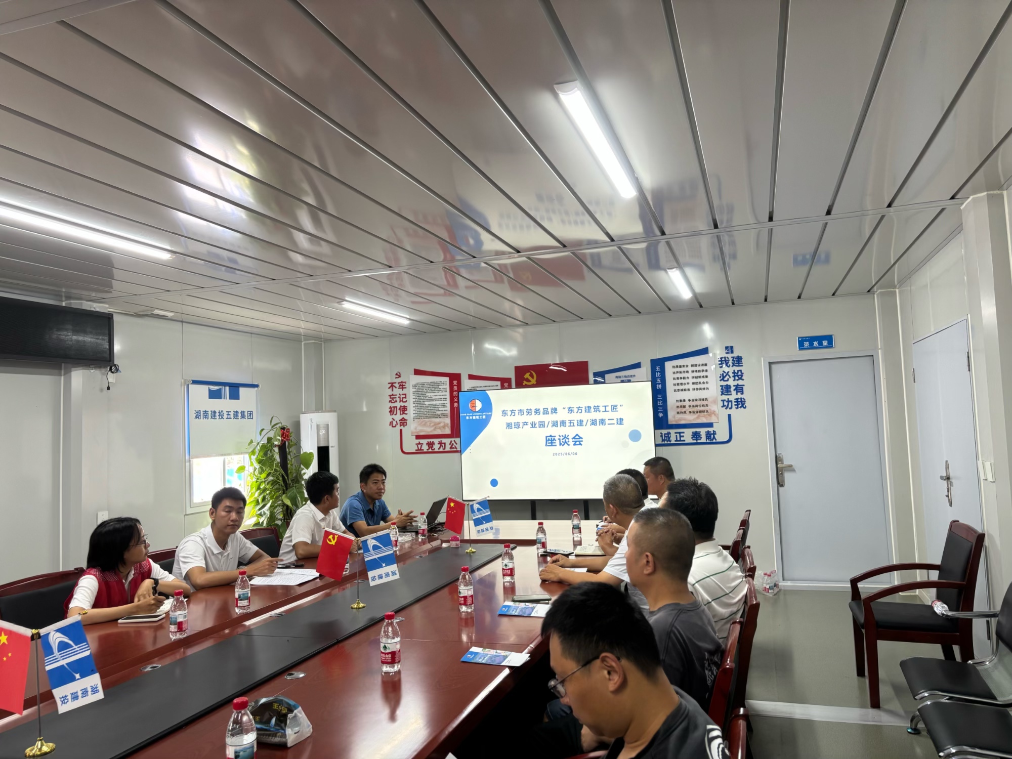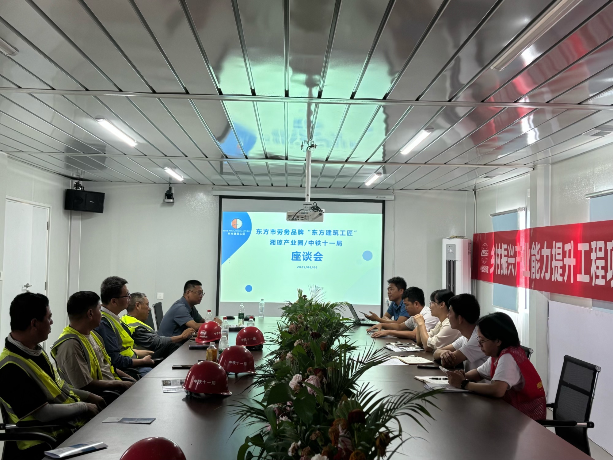 座谈会分别在江苏万年达建设集团、中铁十一局 、湖南第五建筑工程有限公司等项目现场召开。会上,东方市就业服务中心重点宣讲了“东方建筑工匠”劳务品牌培育情况,围绕技能培训、人才输出、岗位匹配和人才数据库等内容,与企业代表深入交流。企业方结合项目需求,阐述建筑工种人才缺口,从岗位需求、施工技术、安全管理等维度,对人才技能、职业素养提出具体要求 。